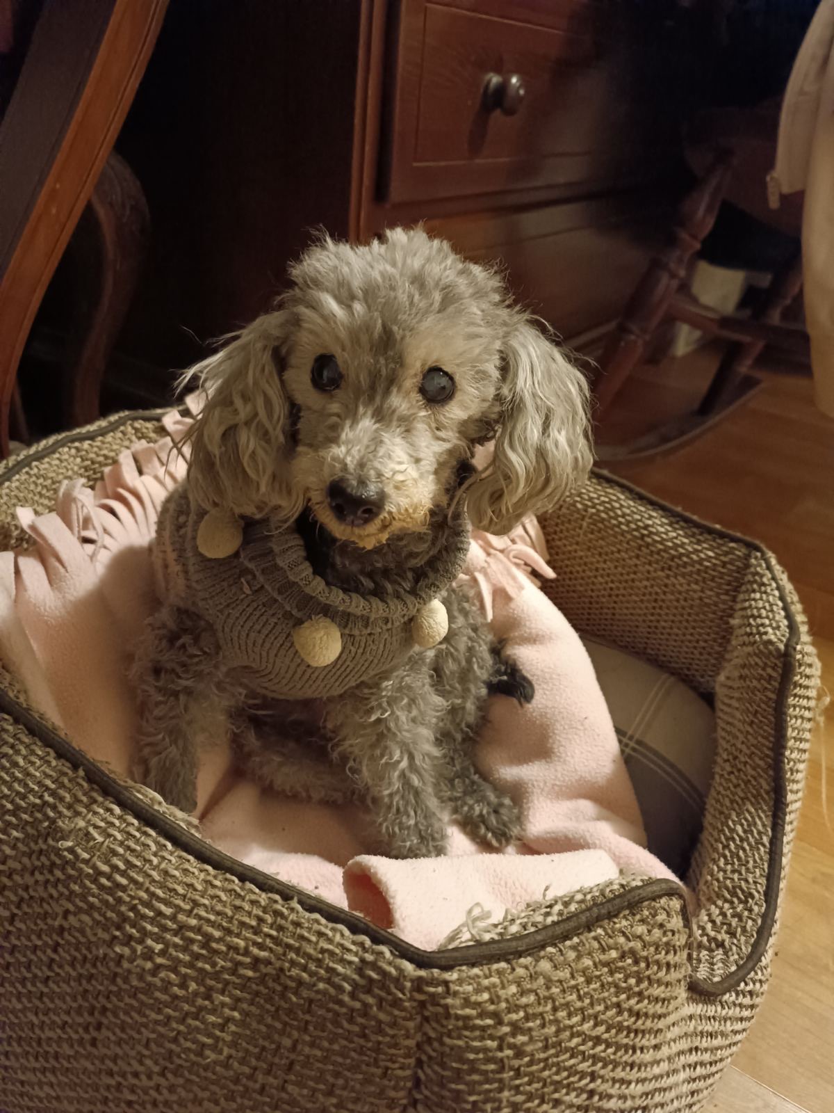 ElaОд: / RasaPudlaPolŽenskiVeličinaMaliBojaSivaČipImaDatum07/02/2025LokacijaKotez, Olge JovicicopisStara Toj pudla, ima 16 godina. Slabo vidi.Na sebi ima sivo-roze dzemper.vlasnikSnezana Djordjevic0637031043sofijadragovic4@gmail.com