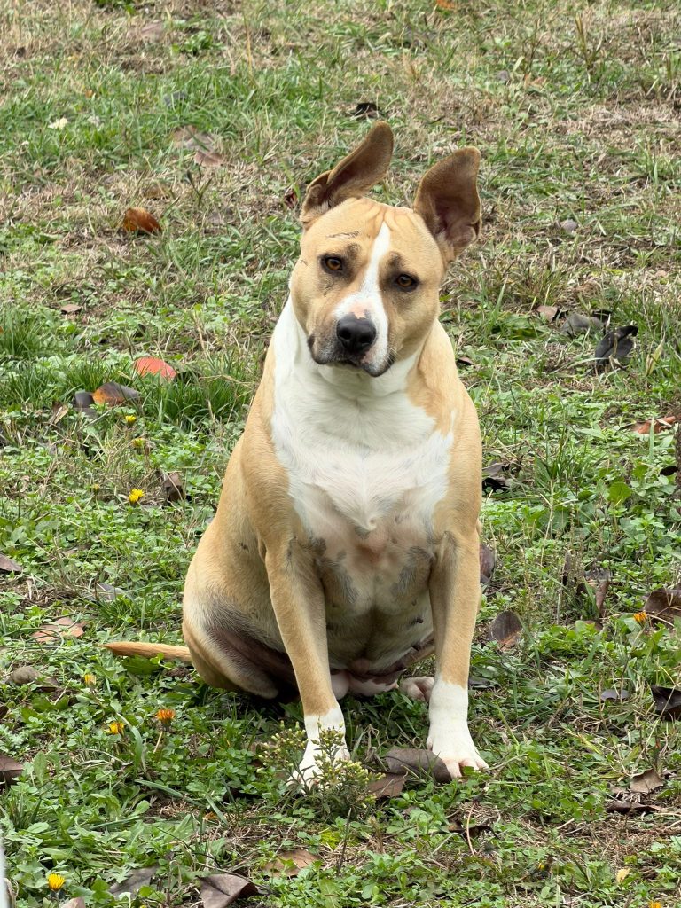 Ima oko 7 meseci, braonkasto zuckasta, jako stidljiva i plasljiva kuca.