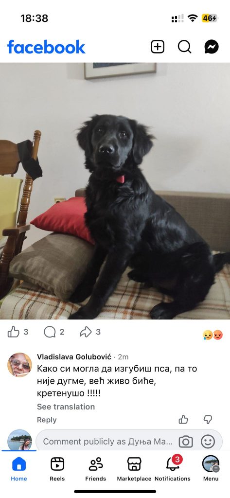 dobar dan, morala sam da napisem da je izgubljen i bio je do pre dva dana, jer su komsije iz nase ulice uzele i odvele ga u ripanj na totalno neko mracno i zabaceno mesto. Mi smo ga nasli jedva i sad su rekli ako se pojavi opet da ce da ga otruju. S obizrom na to, da svi mi koji smo ga hranili imamo pse i nismo u mogucnosti da ga udomimo, molimo sve dobre ljude , da ga oglase da ga udomimo i to hitno, jer je nadjen smestaj samo za vikend i od ponedeljka ako ga vide postoji mogucnost da ga vise videti necemo